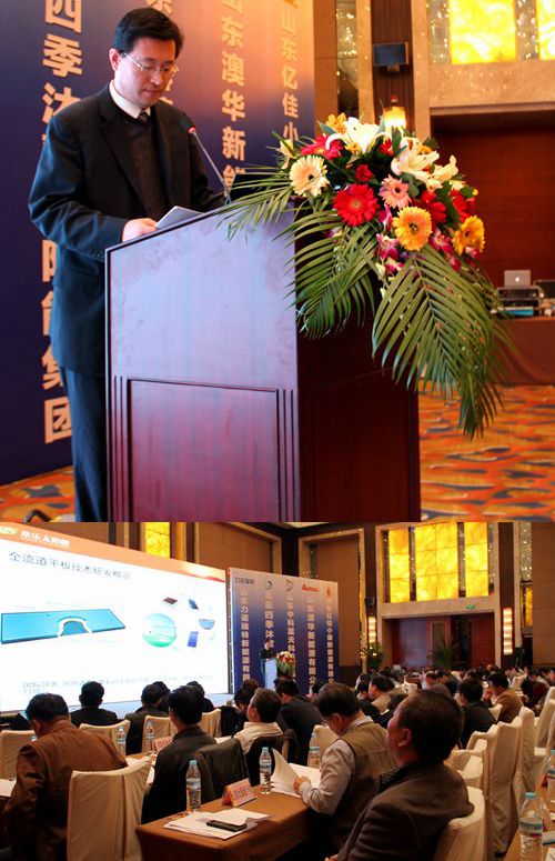 會上,桑樂集團光熱技術(shù)部經(jīng)理馬兵做了《桑樂全流道平板技太陽能技術(shù)優(yōu)化在高層建筑中的應(yīng)用》。桑樂集團投入巨資引進日本先進的焊接生產(chǎn)線,采用不銹鋼為板芯基材,自主設(shè)計了全流道整板虹吸流道,突破國內(nèi)現(xiàn)有平板集熱器技術(shù),全新開發(fā)了一種新型的全流道平板太陽能集熱器。成為國內(nèi)首家生產(chǎn)制造全流道不銹鋼平板太陽能集熱器的廠家。目前已經(jīng)獲得33項專利,其中發(fā)明專利13項,是我們國家真正擁有自主知識產(chǎn)權(quán)的產(chǎn)品。