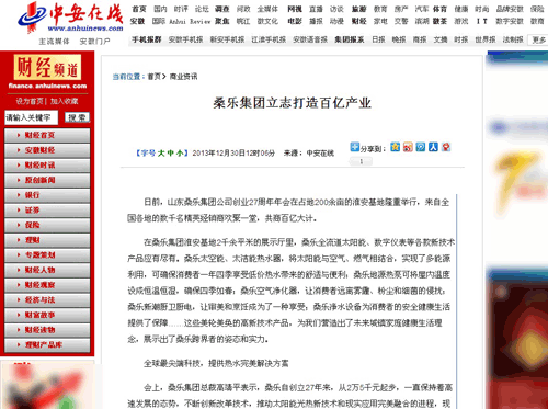 中安在線:桑樂(lè)集團(tuán)立志打造百億產(chǎn)業(yè)