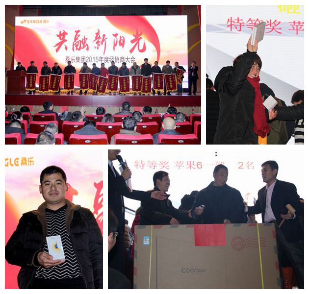 2016年1月12日,借力桑樂集團(tuán)總部2015年度全國經(jīng)銷商大會(huì)成功召開的東風(fēng),桑樂江蘇、安徽區(qū)域以“共融新陽光、共享新桑樂”為主題的鄉(xiāng)鎮(zhèn)經(jīng)銷商會(huì)議在南京解放軍理工大學(xué)會(huì)堂隆重舉行。本次會(huì)議以“新桑樂、新產(chǎn)品,新目標(biāo)、新模式”為主旨,吸引了蘇皖區(qū)域一千多名優(yōu)秀鄉(xiāng)鎮(zhèn)經(jīng)銷商參加,大家齊聚一堂,共襄盛舉,共同開啟桑樂在蘇皖市場的新篇章!
