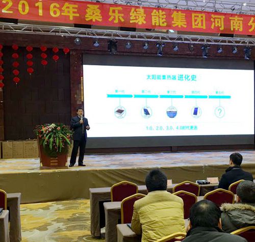 河南公司副總經(jīng)理陳宇對(duì)公司2016年新品與會(huì)展示。桑樂(lè)堅(jiān)持技術(shù)創(chuàng)新,從用戶體驗(yàn)入手的設(shè)計(jì)思路將桑樂(lè)綠能新品進(jìn)行了新的詮釋,并結(jié)合市場(chǎng)機(jī)遇提出了市場(chǎng)發(fā)展的新思路。