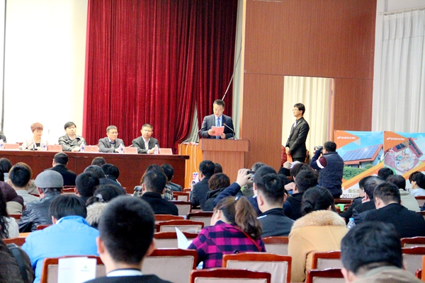 桑樂河北分公司總經(jīng)理趙龍代表桑樂集團向與會者做了熱情洋溢的歡迎詞,趙總講述了桑樂公司的發(fā)展歷程,桑樂一直立足新能源,專注太陽能產(chǎn)業(yè)的發(fā)展,近年來在光伏產(chǎn)業(yè)嶄露頭角,經(jīng)過30年經(jīng)驗積累和技術(shù)沉淀,多元化產(chǎn)品贏得了市場,銷售額穩(wěn)步提升。針對當前國家分布式發(fā)電突飛猛進的勢頭,近年來桑樂在光伏產(chǎn)業(yè)嶄露頭角,光伏生產(chǎn)線助力光伏銷售的發(fā)展。桑樂為農(nóng)村光伏市場提供了堅強的后盾,桑樂經(jīng)銷商快速占領(lǐng)市場,展現(xiàn)了桑樂光伏產(chǎn)業(yè)的的美好愿景!