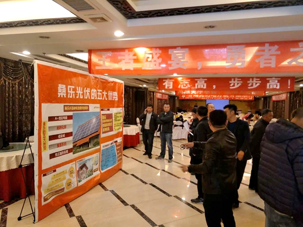 經(jīng)銷商李偉東經(jīng)理針對平度現(xiàn)狀,給鄉(xiāng)鎮(zhèn)經(jīng)銷商做了深入細致的市場分析,指導大家如何建電站,如何并網(wǎng)以及售后服務。大家對光伏電站產生了濃厚的興趣,鄉(xiāng)鎮(zhèn)經(jīng)銷商紛紛表示先建一臺樣板工程,滿足自身需要,然后大力推廣,全場隆重簽約。