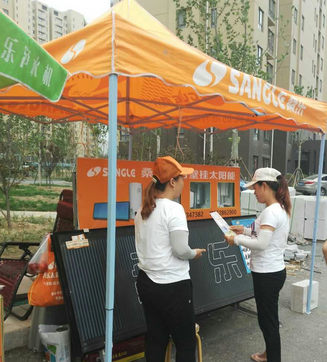 城市新建高層越來越多,在濟(jì)南市區(qū)新建住宅樓基本都是三十多層的高層,這種用戶只能選擇陽臺(tái)壁掛太陽能、空氣能、電熱水器幾種產(chǎn)品。魯霞在新小區(qū)配發(fā)鑰匙前充分做好促銷宣傳活動(dòng),通過小區(qū)微信群發(fā)布促銷團(tuán)購活動(dòng)通知;通過物業(yè)或廣告公司收集客戶信息;通過桑樂400客服電話統(tǒng)一發(fā)送團(tuán)購活動(dòng)內(nèi)容;現(xiàn)場(chǎng)安排促銷人員逐戶走訪,宣傳介紹桑樂陽臺(tái)壁掛;每銷售10臺(tái)或者20臺(tái)在小區(qū)做一次抽獎(jiǎng)活動(dòng),活躍現(xiàn)場(chǎng)氣氛,提高消費(fèi)者購買積極性。濟(jì)南老百姓對(duì)太陽能很認(rèn)可,只要陽臺(tái)允許,促銷活動(dòng)到位,大家都會(huì)選擇陽臺(tái)壁掛太陽能。