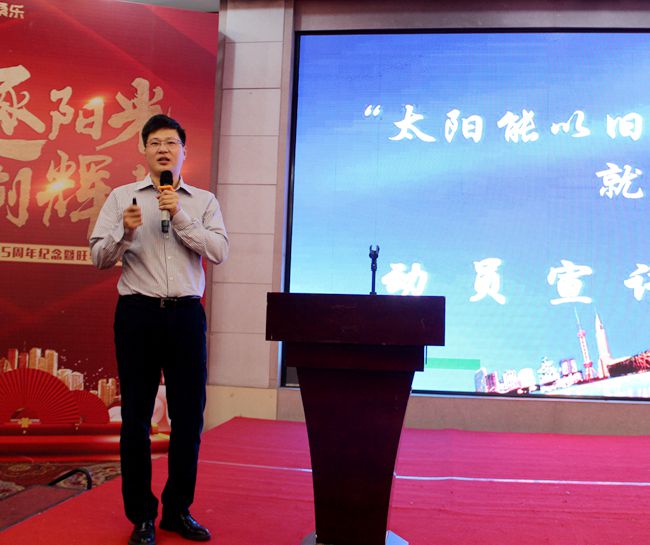 集團王雪廣董事長蒞臨會議現(xiàn)場并發(fā)表主旨演講,首先,他代表桑樂集團對安徽經(jīng)銷商的到來表示熱烈的歡迎,值此桑樂太陽能進入安徽市場15周年之際,感謝桑樂家人對公司的信任和支持。董事長從自身經(jīng)商經(jīng)歷講起,講到做任何事情都要堅定信心,執(zhí)著,忠誠自己的事業(yè),以平穩(wěn)的心態(tài)發(fā)展自己的事業(yè)。桑樂30年的發(fā)展,證明桑樂是具有品牌和內(nèi)涵的企業(yè)。在經(jīng)濟發(fā)展日新月異的今天,產(chǎn)業(yè)布局競爭激烈,桑樂的優(yōu)勢在于技術(shù)優(yōu)勢,打造桑樂“環(huán)保、節(jié)能、綠色”的產(chǎn)業(yè)布局,做好終端市場。2018年是桑樂入駐安徽15周年,安徽充分發(fā)揮鄉(xiāng)鎮(zhèn)市場的區(qū)域優(yōu)勢,市場厚積薄發(fā),業(yè)績突出,希望今后的日子里,公司和經(jīng)銷商共同成長,共同發(fā)展。安徽工程市場近年來也有重要突破,尤其是在平板工程領(lǐng)域滿足了高端用戶的市場需求,公司將會從技術(shù)、價格、服務(wù)等多個角度進行扶持。