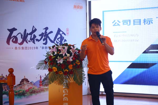 7月18日, “百煉承金——桑樂集團2019年承德行樂享會”會議正式在承德云山飯店拉開帷幕。在會議中,桑樂集團董事長王雪廣先生做了主旨發(fā)言,他首先代表桑樂集團歡迎從全國各地遠(yuǎn)道而來的經(jīng)銷商家人們,并向他們表示真誠的問候,隨后在報告中指出:2018年在云臺山發(fā)布的多元化戰(zhàn)略經(jīng)過一年的嚴(yán)謹(jǐn)籌備、立體布局已經(jīng)取得了可喜的成績,這離不開以在座各位為代表的工程商、渠道商家人的信任與支持,在未來,桑樂電器、桑樂衛(wèi)浴、桑樂綠色建筑一體化都將接踵而至,打造屬于我們桑樂的“盛世王朝”。